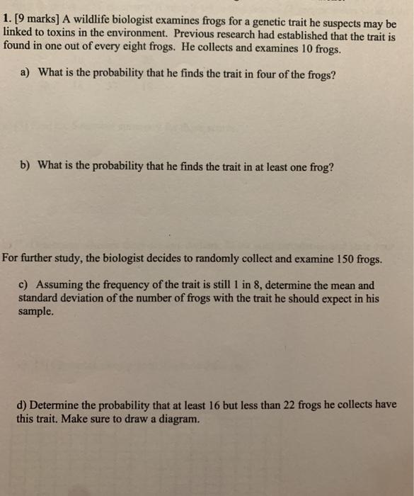 Solved 1 9 Marks A Wildlife Biologist Examines Frogs For Chegg Com